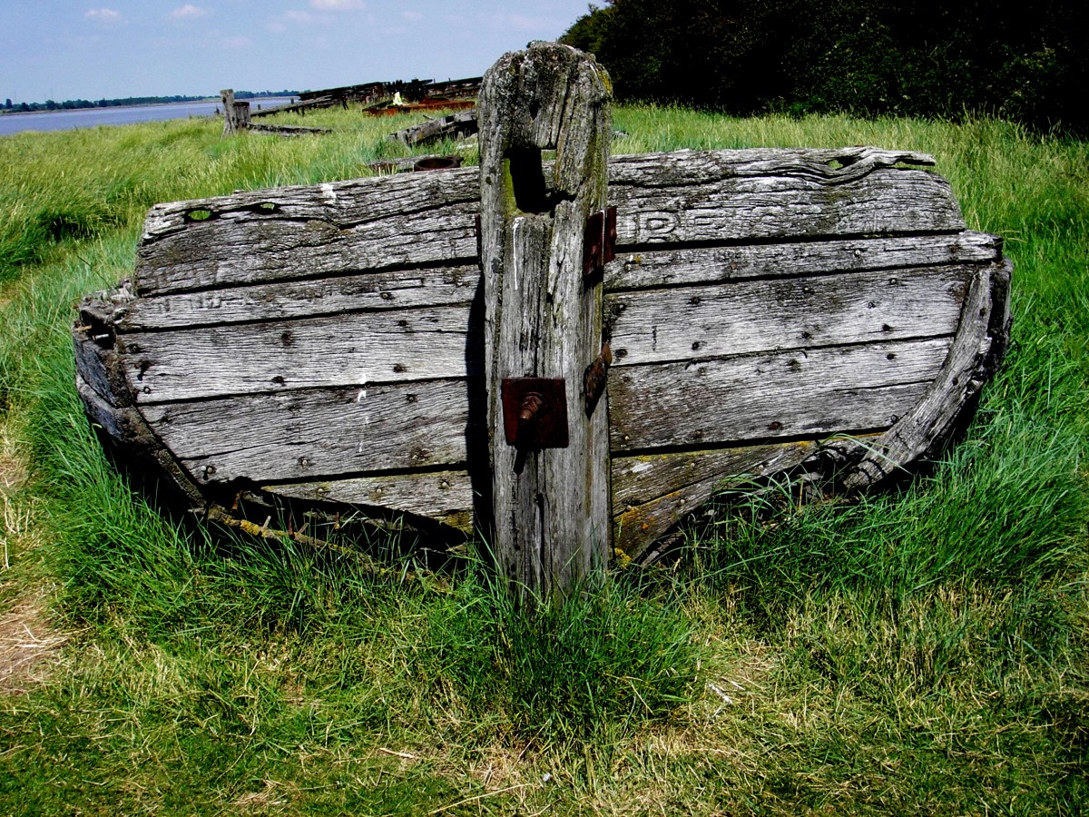 A barge fading away, one of many sunk to preserve the Gloucester and Sharpness Canal. Purton UK