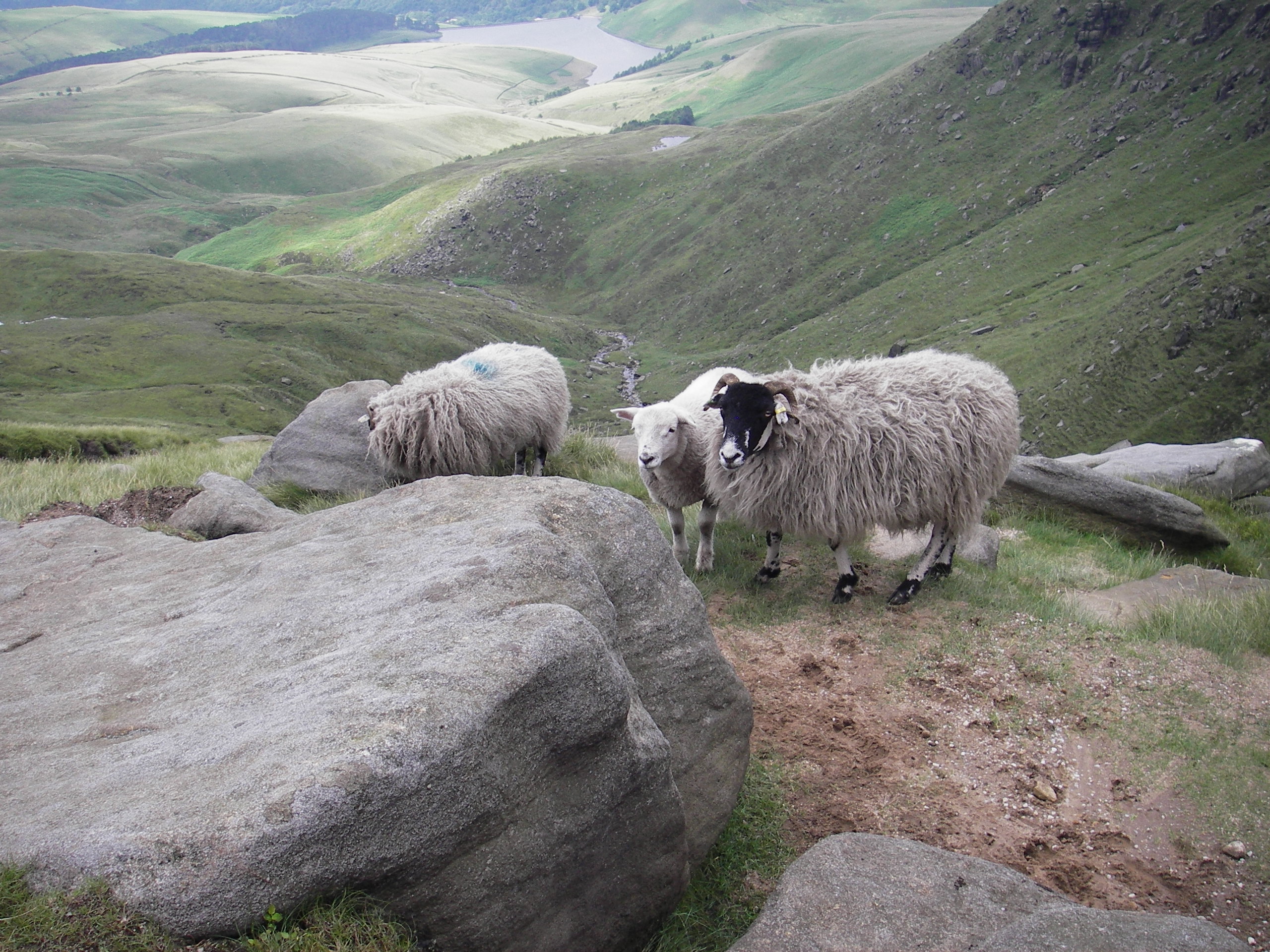 The semi-wild sheep are everywhere, in this case near the falls at Kinder Scout.