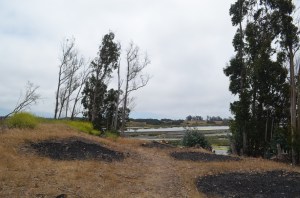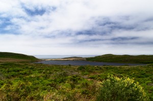 The dunes and beach beyond the lagoon were closed to allow shorebirds to nest and raise their young. Totally laudable, and later we walked to the beach farther North. These pictures are uncommonly sunny – usually the coast is socked in with fog this time of year. More like this view from Drakes’ cliff
